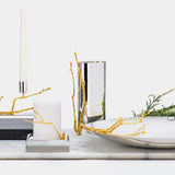Unikátní váza z kolekce PURE II je vyrobena z postříbřeného kovu a dekorována pozlacenou větvičkou.