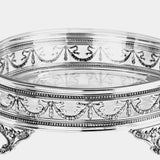 Velká centrální mísa / servírovací tác s masivními dekoracemi stuhy a květů. Postříbřeno.