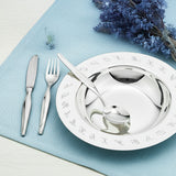 Dětský stříbrný příbor - set stříbrné vidličky, lžíce a nože.