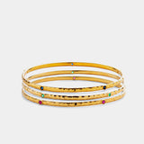 Set tří dámských náramků vyrobených z postříbřeného stříbra a zdobených zirkony v modré, zelené a fialové barvě.