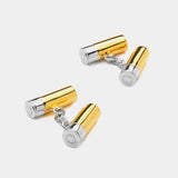 Stříbrné manžetové knoflíčky v podobě nábojnic.
