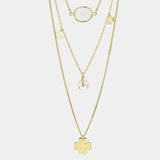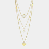 Trojitý stříbrný náhrdelník zdobený čtyřlístky pro štěstí a zirkony.