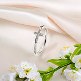 Krásný stříbrný prsten zdobený křížkem a zirkony. Jedna velikost.