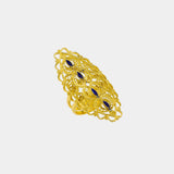 Krásný stříbrný prstýnek zdobený stylizovanými srdci s modrým zvýrazněním smaltem. Pozlaceno.