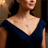 Stříbrný řetízek a přívěsek v podobě stylizovaného Ducha Svatého. Zdobeno zirkony.