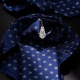 Sedmkrát skládaná kravata ručně šitá s nejvyšší pečlivostí italskými mistry. Kravata ukrývá drobný přívěsek ze stříbra 925/1000s motivem z Kámasútry. Přívěsek je pečlivě uschován uvnitř záhybů kravaty a díky své drobné velikosti není při nošení vidět z žádné strany. Elegantní a okouzlující, pro pány s vysokým smyslem pro kvalitu.