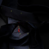 Sedmkrát skládaná kravata ručně šitá s nejvyšší pečlivostí italskými mistry. Kravata ukrývá drobný přívěsek z pravého červeného korálu a pozlaceného stříbra 925/1000 "corno-pepperoncino", neboli červenou papričku, která je tradičním talismanem pro štěstí a ochranu před zlem.*. Přívěsek je pečlivě uschován uvnitř záhybů kravaty a díky své drobné velikosti není při nošení vidět z žádné strany. Elegantní a okouzlující, pro pány s vysokým smyslem pro kvalitu.
