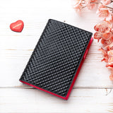 Kožený dámský adresář A6, černý s pyramidkami a fuchsiovým vnitřkem