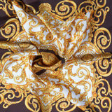 Tento krásný luxusní hnědý šátek pro vás vyrábíme z nejjemnějšího italského hedvábí mimořádné kvality ve městě Como v Itálii. Okraje šátku jsou ručně šité. Elegantní šátek z limitované kolekce Vintage dává okusit ryzí vznešenost, je nezbytným doplňkem pro dámy s vysokým smyslem pro vytříbený styl. Originální symbióza dokonalosti a rafinované zdobnosti.